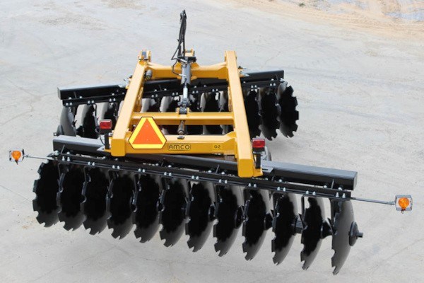Our most massive tool, the G2 Wheel Offset Harrow features 12½” blade spacing and measures 54″ from the top of the frame to the bottom of the blades. Weighing from 10,179 to 18,341 pounds, it is perfect for challenging conditions like breaking up new ground and heavily wooded site preparation. The G2 is also built to withstand the toughest construction industry tasks. To handle the G2’s power, AMCO designed an oversized 5″ x 16″ x 2½” hydraulic cylinder with special clevis that lifts the harrow into transport position on dual wheels.